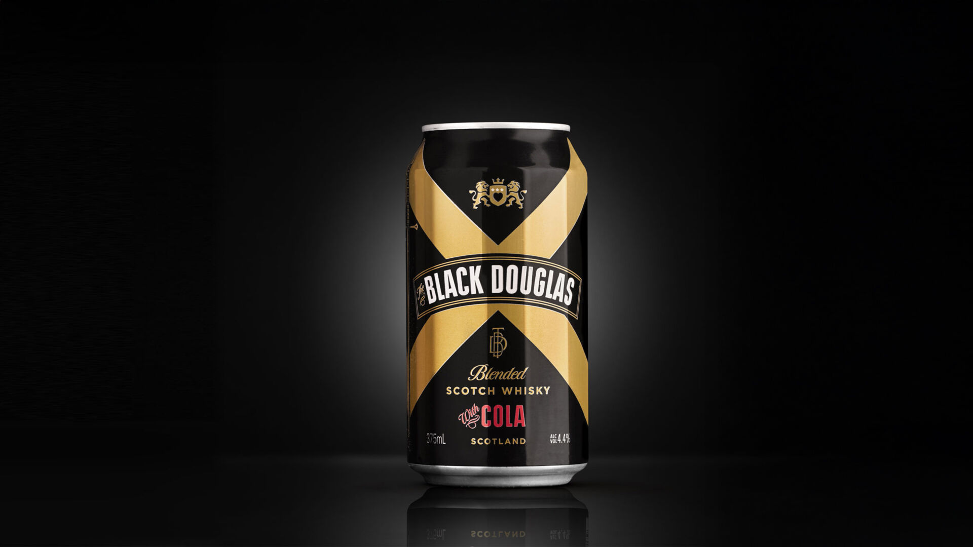 The RTD Black Douglas and Coke takes the primary asset of the cross and blows it up large - wrapping around the can in a dynamic, cut through manner. With simplified graphics to both appeal to a younger audience as well as work within print constraints, the RTD is both contemporary yet with heritage cues to reassure consumers of its credibility.